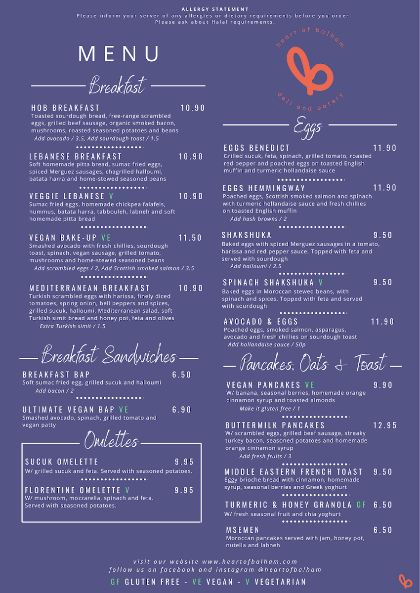 At the Heart of Balham (HOB), diners are treated to a unique menu that blends Middle Eastern delicacies with a British twist, perfect for breakfast and lunch. Their breakfast offerings include a mouthwatering Hob Breakfast and a Lebanese Breakfast, making it a go-to brunch spot. Health-conscious patrons will love the array of smoothies, like the refreshing Mango & Avocado, while coffee enthusiasts can indulge in expertly crafted espresso drinks, including their celebrated flat whites and Moroccan mint tea.